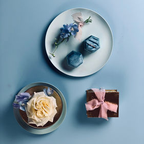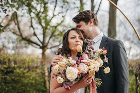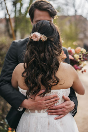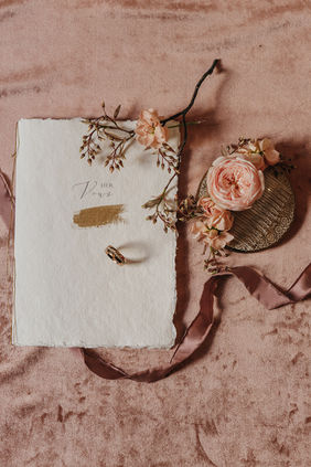 This beautiful spring wedding theme was inspired by the beautiful Körner Park - one of Berlins most beautiful baroque gardens. The park is situated in the centre of Neukölln and gives you the feeling of beeing in a garden of a french chateau. The design theme was created with a salmon colored rose and flowers in vanilla tones. The gold used in the cutlery, vases, and seating plates makes this theme warm and inviting.