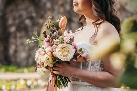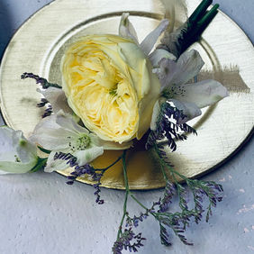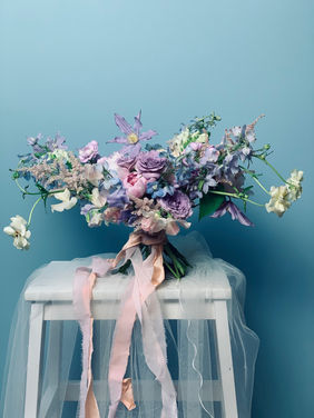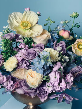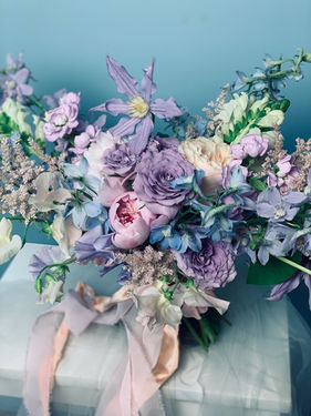 A beach summer wedding theme was inspired by Mallorcas private beaches & the 5 Star Hotel Fontsanta. The blue shades of the water and sky were mirrored in the choice of color and floaty elements of the flowers. The wedding bouquet was created with yellow and purple buttercup roses and a bit of blushing pink peonies which scent amazing.